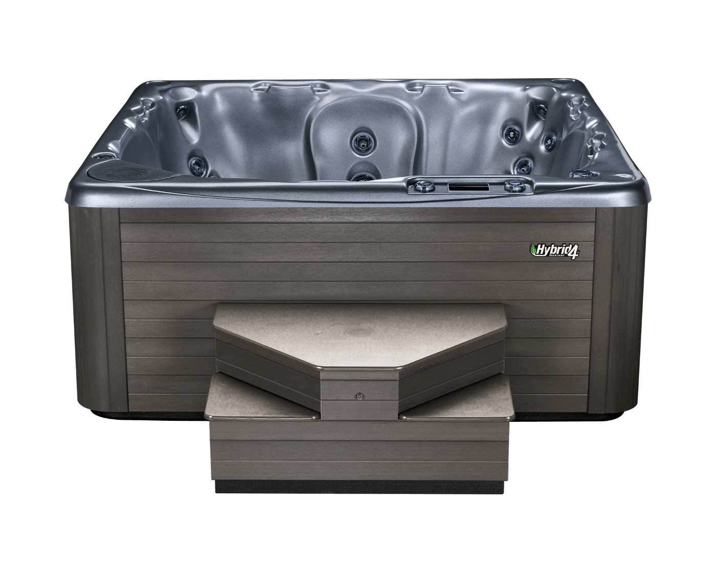 All-Weather Safeaxiss™ Steps Made with non-slip surfacing, the Safeaxiss™ Steps allow the user to access the hot tub from any angle with ease, while multiple tiers provide easy entry and exit. The steps are also insulated, and serve as a protective cover for the Energy Saver Management System.
